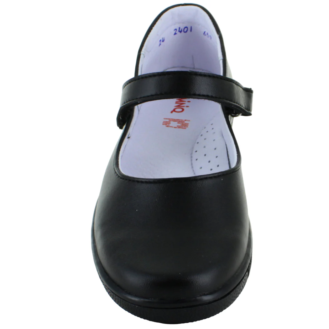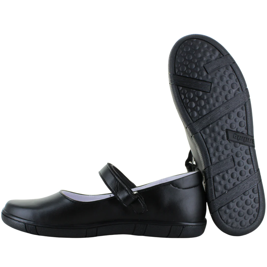 Balerina escolar – Color negro – Material: Polipiel. Suela antiderrapante con dientes de goma, material ligero y con gran confort en cada paso con total seguridad y agarre al empeine. Diseño sencillo y casual con color oscuro encajando perfecto para la temporada escolar. TODOS nuestros productos son 100% ORIGINALES y nuevos directos de proveedor por lo que NO vendemos productos de imitación, clon ó artículos usados ya que eso está penado por la ley. El calzado viene justo a su talla, podría venir levemente amplio pero depende del pie del usuario para consideralo al momento de elegir tu talla.