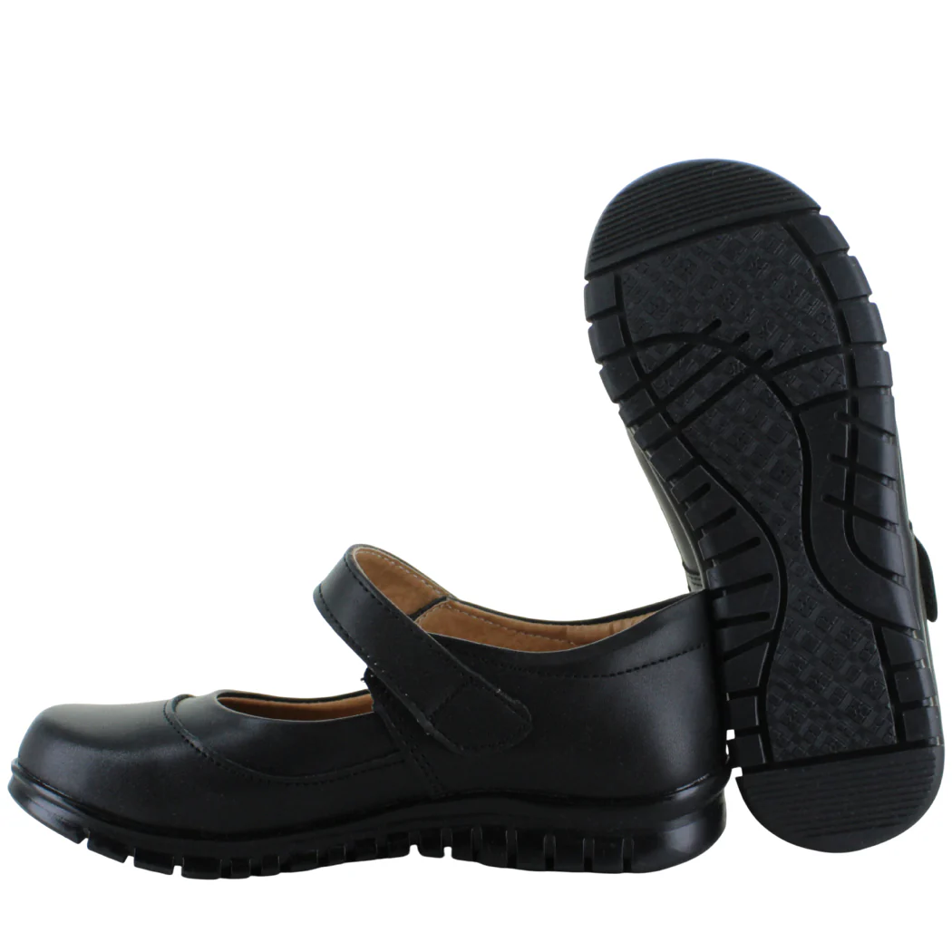 Balerina escolar – Color negro – Material: Ecopiel. Suela antiderrapante con dientes de goma, material ligero y con gran confort en cada paso con total seguridad y agarre al empeine. Diseño sencillo y casual con color oscuro encajando perfecto para la temporada escolar. TODOS nuestros productos son 100% ORIGINALES y nuevos directos de proveedor por lo que NO vendemos productos de imitación, clon ó artículos usados ya que eso está penado por la ley. El calzado viene justo a su talla, podría venir levemente amplio pero depende del pie del usuario para consideralo al momento de elegir tu talla.
