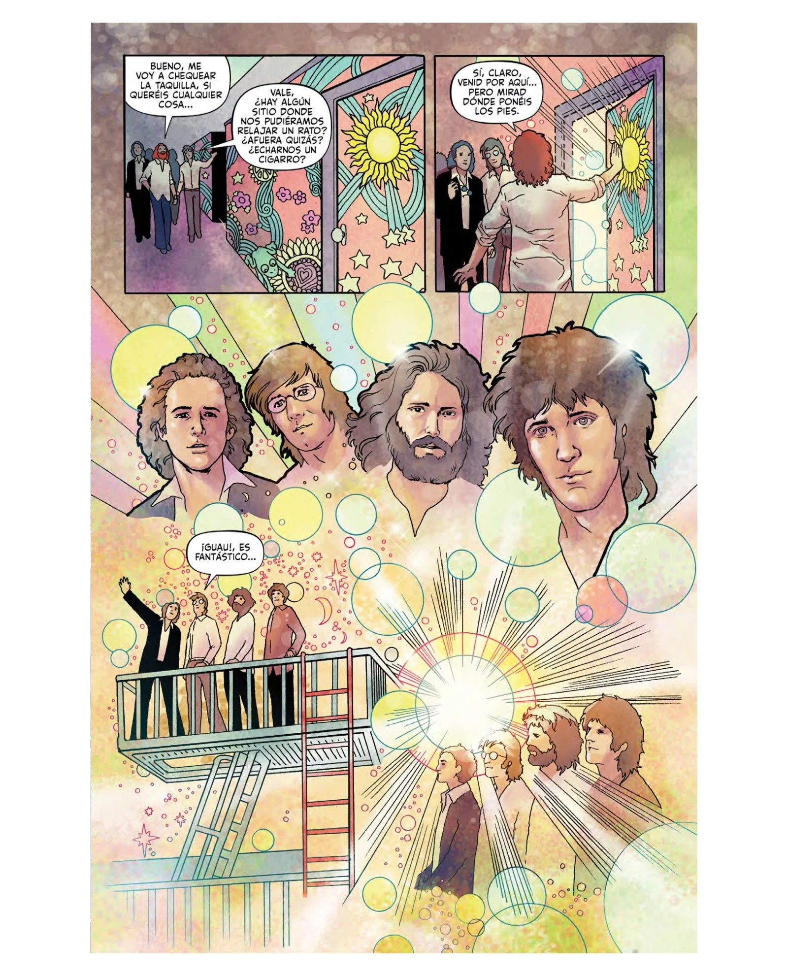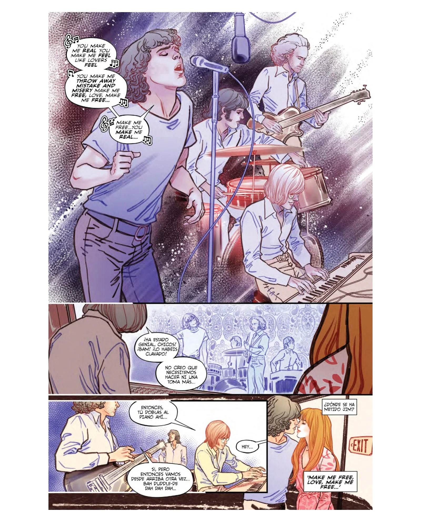 Con guion de la británica y muy versada Leah Moore (hija del maestro del cómic Alan Moore) en colaboración con los miembros supervivientes de The Doors, las viñetas corren a cargo de laureados y señeros dibujantes de la escena internacional del cómic: el italiano Armitano, el griego Vasilis Lolos, la galardonada artista francesa Marguerite Sauvage y los norteamericanos Tony Parker, Collen Doran (muy reconocida por su biografía gráfica de Stan Lee de Marvel Comics), Ryan Kelly o la multipremiada Jill Thompson (afamada por el Wonder Woman de DC Comics) entre otros.
